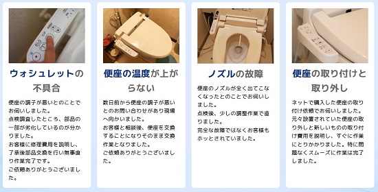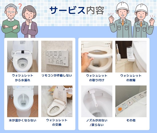 木津川市で対応可能な温水便座、ウォシュレットの修理サービスとなります。その他のトラブルやご相談に関しましてはお気軽に受付窓口までお問い合わせください。
