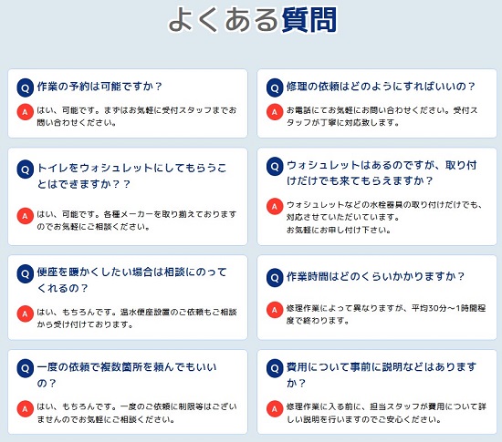 ウォシュレット・温水便座に関するよくあるお問い合わせ
